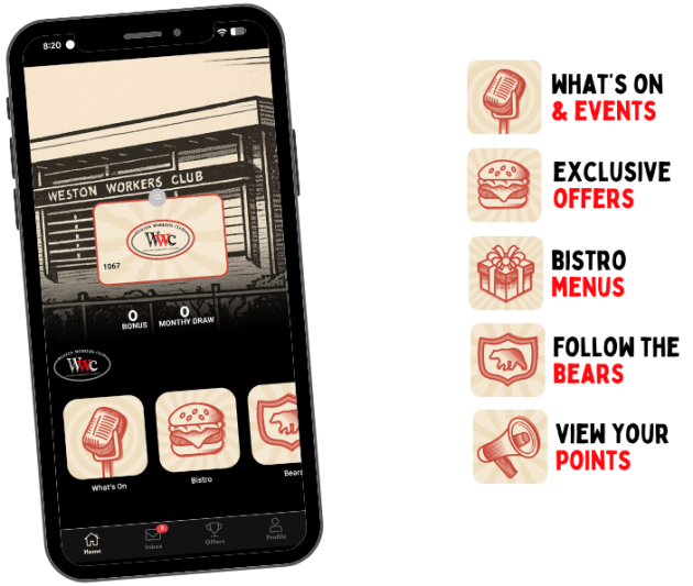 Located in the heart of Weston, Weston Workers Club is the ideal place for lunch, dinner, entertainment or a casual drink with friends. With easy parking and a warm, welcoming atmosphere, we’re proud to be your local destination for good food and great times.